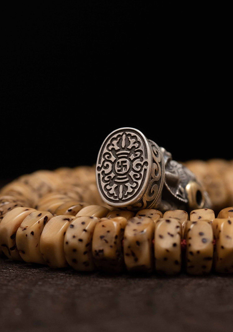 【チベット雪獅子法印】を意匠の源とし、 その精髄を汲み取り、余計な装飾を排して、静謐かつ威厳ある姿へと昇華させました。形は簡潔ながら、内に秘めた気品と荘厳さが漂います。