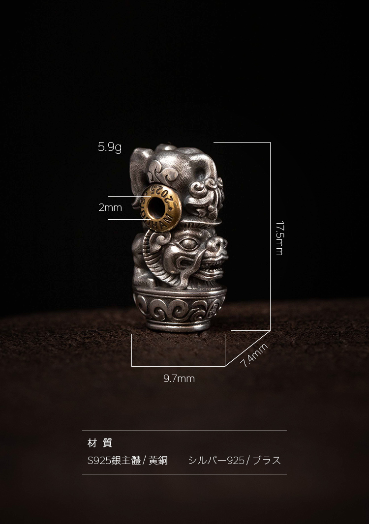【チベット雪獅子法印】を意匠の源とし、 その精髄を汲み取り、余計な装飾を排して、静謐かつ威厳ある姿へと昇華させました。形は簡潔ながら、内に秘めた気品と荘厳さが漂います。