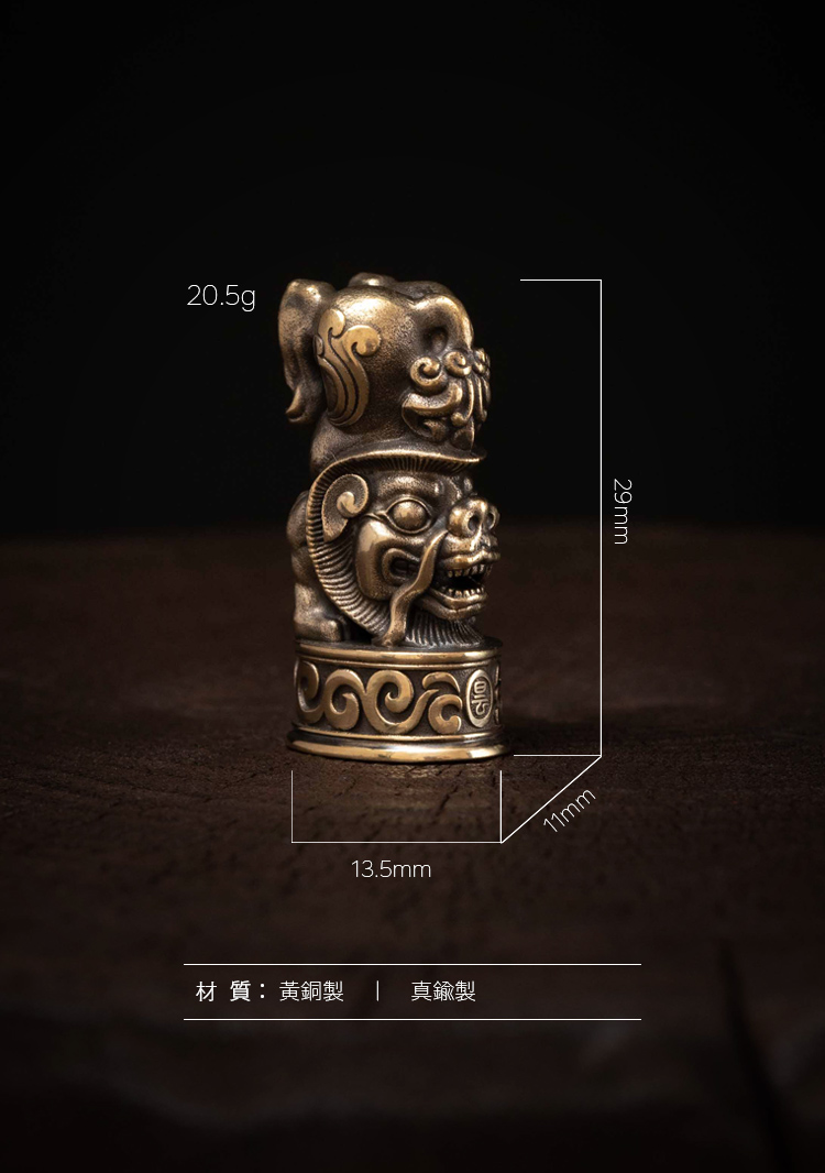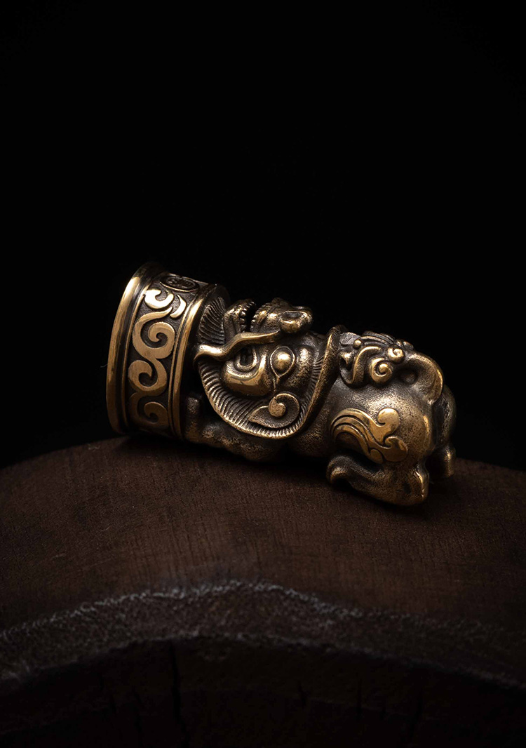 【チベット雪獅子法印】を意匠の源とし、 その精髄を汲み取り、余計な装飾を排して、静謐かつ威厳ある姿へと昇華させました。形は簡潔ながら、内に秘めた気品と荘厳さが漂います。