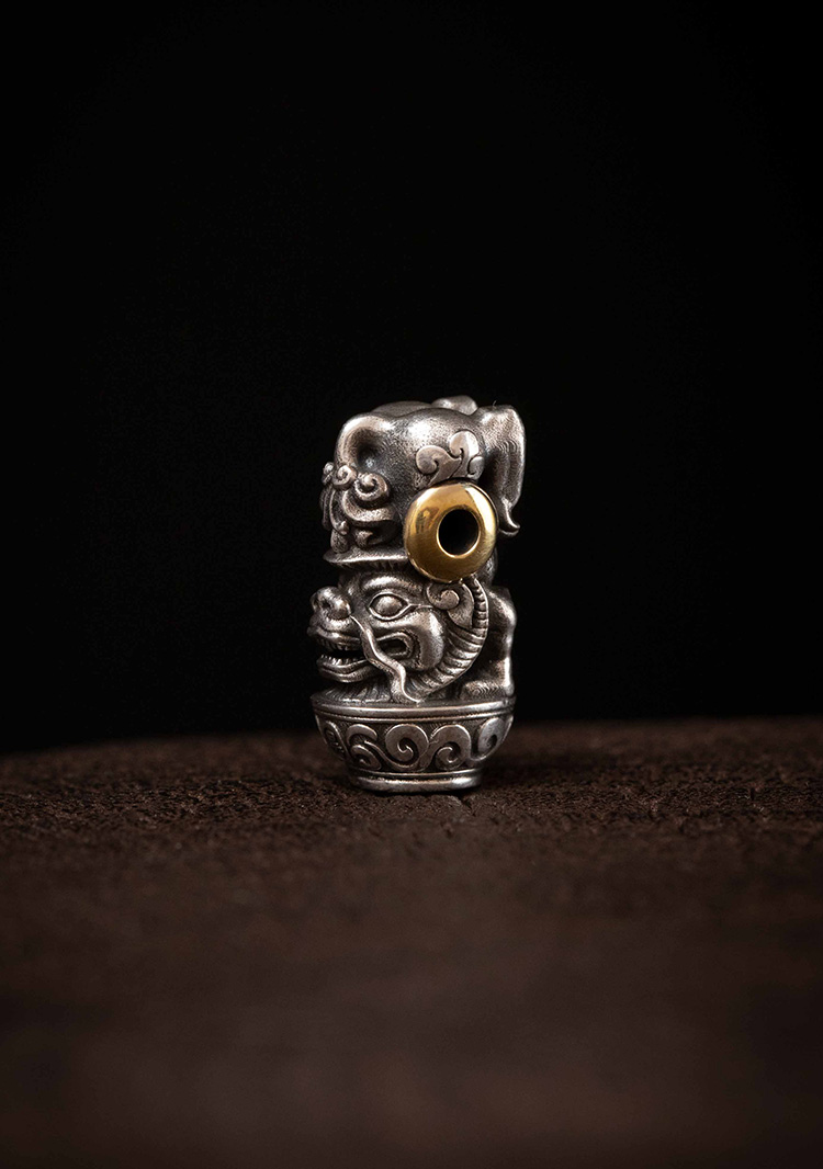 【チベット雪獅子法印】を意匠の源とし、 その精髄を汲み取り、余計な装飾を排して、静謐かつ威厳ある姿へと昇華させました。形は簡潔ながら、内に秘めた気品と荘厳さが漂います。