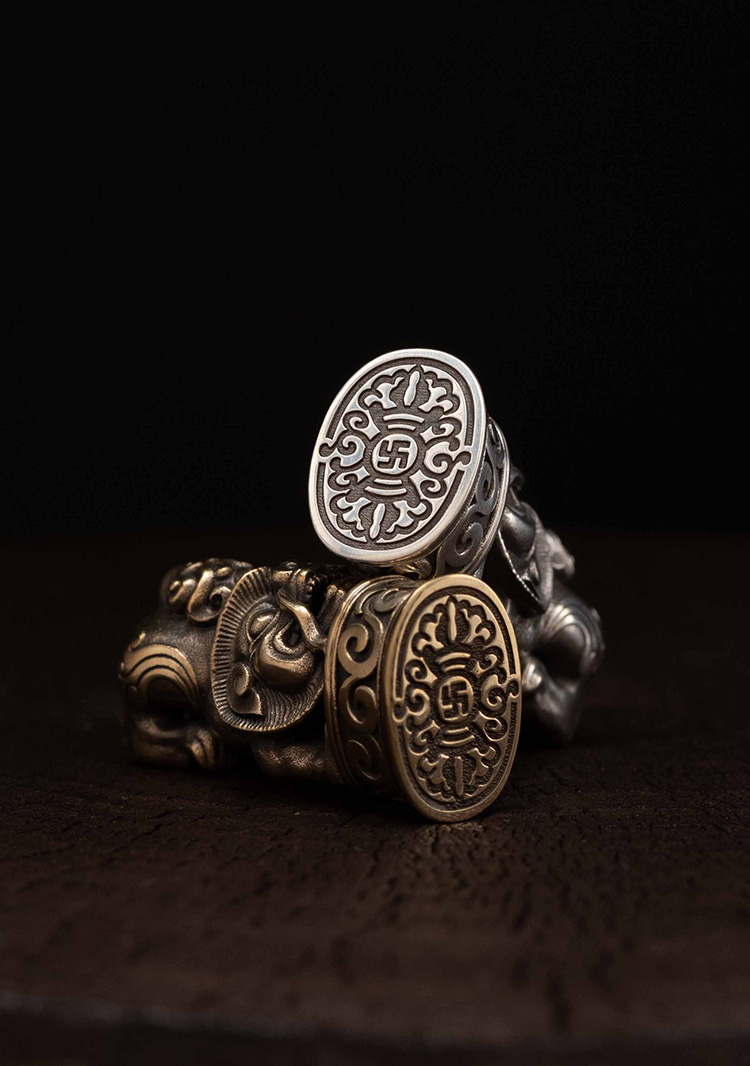 【チベット雪獅子法印】を意匠の源とし、 その精髄を汲み取り、余計な装飾を排して、静謐かつ威厳ある姿へと昇華させました。形は簡潔ながら、内に秘めた気品と荘厳さが漂います。